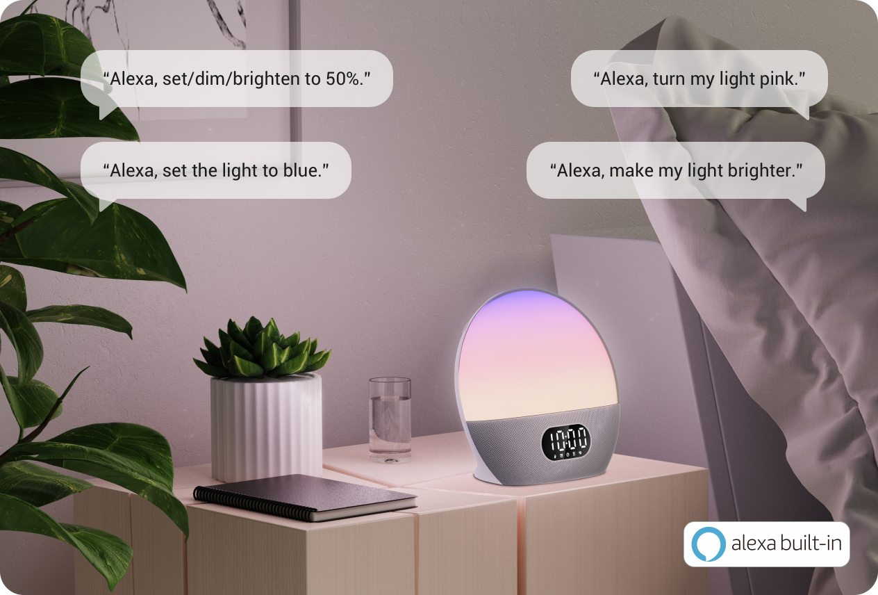 Let Alexa take care of controlling the settings and routines on your wake-up light effortlessly.